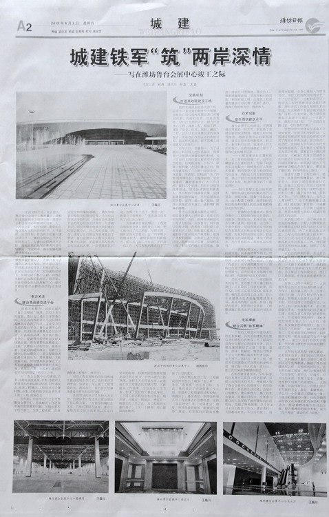 城建鐵軍“筑”兩岸深情——寫在濰坊魯臺會展中心竣工之際》——濰坊日報2012年8月2日A2版