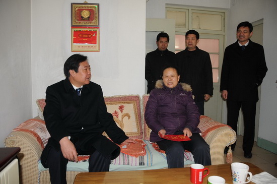 1月19日上午,濰坊市政協(xié)主席趙興濤,市政協(xié)副主席、市總工會主席滿國強等在集團公司董事長徐鵬強陪同下,分別走訪慰問了集團公司全國勞模劉洪章和兩個困難戶家庭——第二分公司任文君和物業(yè)分公司趙淑貞。陪同走訪的還有市建設局黨委副書記高峰,集團公司高管層領導滕忠斌、李坤明等。