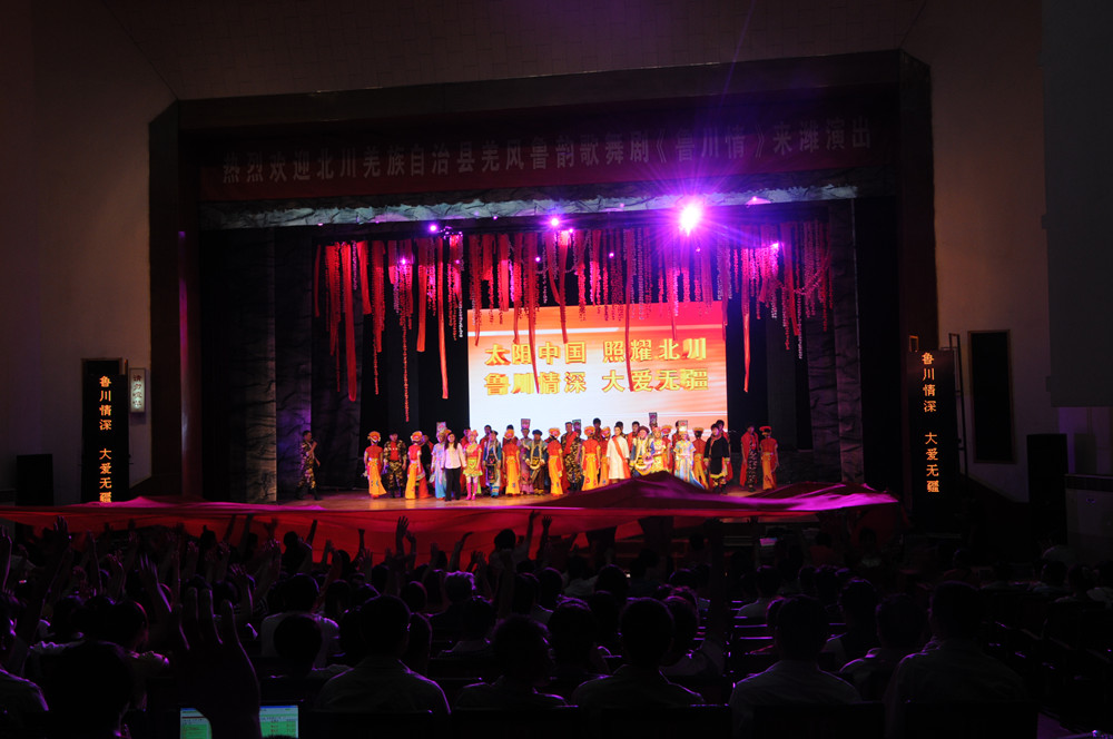 6月15日晚,由四川省北川羌族自治縣文化旅游局與威海演藝有限公司聯手打造的“羌風魯韻歌舞劇——魯川情”在濰州劇場上演。集團公司組織曾經參加過援川建設的員工150人現場觀看演出,這些人員包括:第二分公司30人、第四分公司40人、第八分公司30人、安裝分公司10人、園林公司5人、市政公司30人,集團總部5人。此次觀看《魯川情》文藝演出,是根據市委的統一安排而進行的,市建設系統共組織了包括了集團公司在內的200人觀看了這場演出。