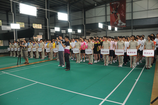 18日上午8:30分,開幕式正式開始。集團在濰的高管層領導朱九洲、滕忠斌、李坤明、穆乃杰、張學智、閆鵬以及各參賽單位的領導(或領隊)在主席臺就位,16支團體代表隊和17名裁判員組成的裁判隊伍在各自禮儀小姐的引領下,伴著激揚、奮進、歡快的運動員進行曲,邁著矯健的步伐,依次走向主席臺前,在指定區域列隊。隨后,監事會主席、黨委副書記、紀委書記滕忠斌致開幕辭,運動員代表田真寧、裁判員代表孫侃分別代表運動員和裁判員宣誓。最后,集團公司總經理朱九洲宣布:“濰坊昌大建設集團第一屆‘昌大建設杯’羽毛球比賽開幕”。