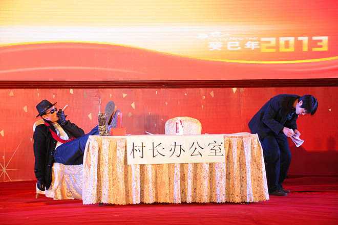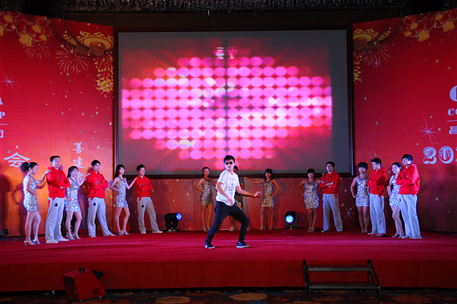 在這瑞雪映照、喜氣祥和的新年酒會上,集團員工自編自演自導了13個文藝節目,有第四、第八、安裝分公司自創的舞蹈《鮮花的祝?!?;第一、第四、第五、安裝分公司自編的舞蹈《江南STYLE》;機施分公司自編的小品《超幸福售樓處》,市政公司自創的小品《工地探親》,第七分公司自編舞臺劇《旅途》,第一分公司自創的啞劇《蓋章》;第二、第八分公司合演的相聲《你是我兄弟》;第六分公司和機施分公司自編的MV歌曲《父親》;集團總部和第六分公司合作的歌伴舞《大中國》,第二、第五、第八分公司和泰和公司聯袂的歌伴舞《舉杯吧,朋友》,市政公司自編歌伴舞《快樂崇拜》;裝飾分公司演出的京劇《轅門射戟》新段;第三分公司自創健美操《淑女愛運動》,這些節目,或氣勢如宏、或舞美歌悅、或滑稽幽默、或時尚奔放、或優雅沉香、或豪放激情,以此盡展昌大人2012年愉悅的心情。與往年相比,今年的文藝演出,規模更大,節目類型更多,節目包裝效果更好,更貼近企業實際。還有一個最突出的亮點是今年的節目編排更大范圍地突破了單位界限,實現了單位間的大聯合大串燒。在年底各項業務更為繁重的時候,全體演服人員自覺克服工演矛盾,以極大的熱情投入新年酒會的準備工作,許多單位的演員白天忙碌一天,主要靠晚上或加班進行排練,有些演職員因為太勞累病倒了,還堅持排練和工作,表現出了強烈的責任心和極高的集體榮譽感。集團總部相關部門全力保障文藝演出和酒會的各項籌備工作,確保了新年酒會的順利實施。