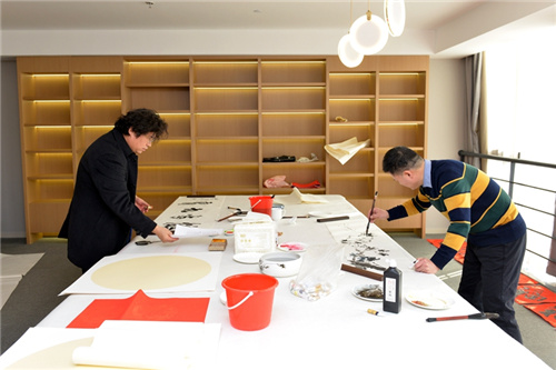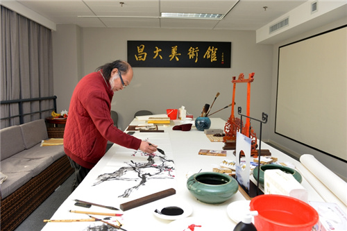 王居明一行對昌大美術(shù)館的藝術(shù)設(shè)計給予高度評價,在現(xiàn)場創(chuàng)作“福”字、山水畫、花鳥畫、人物畫和書法等作品氣韻渾然天成,妙趣匠心獨(dú)具。豐富了昌大美術(shù)館館藏,對昌大集團(tuán)文化建設(shè)具有積極影響。