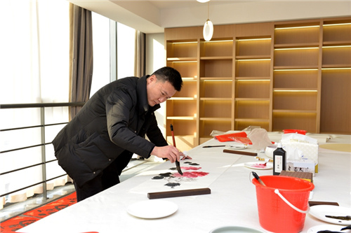 2021年2月7日上午,濰坊市美術(shù)家協(xié)會送“福”進(jìn)昌大活動暨昌大美術(shù)館開館儀式在集團(tuán)辦公樓26樓昌大美術(shù)館舉行。山東省美協(xié)副主席、濰坊市美協(xié)主席王居明率濰坊市美術(shù)家協(xié)會畫家一行來到昌大美術(shù)館參觀交流,潑墨筆會,寓意福運(yùn)昌大!集團(tuán)董事長徐鵬強(qiáng)、總裁朱九洲、工會主席穆乃杰、副總裁吳杰參加活動,并對藝術(shù)家們送“福”進(jìn)昌大活動表示熱烈歡迎和誠摯感謝。