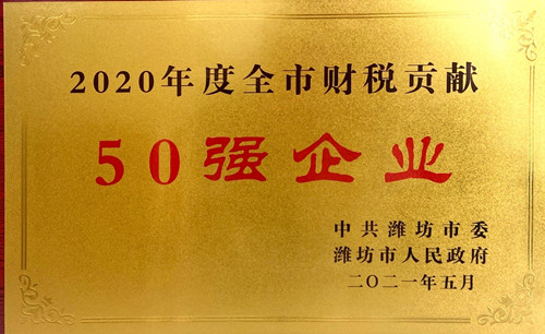 2021年5月11日,集團辦公室將濰坊市委、市政府頒發(fā)的兩個重量級榮譽獎牌領回:2020年度全市財稅貢獻50強企業(yè);2020年度全市高質(zhì)量發(fā)展領軍企業(yè)。