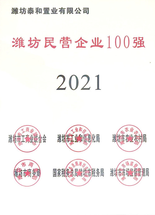 2021年11月18日下午,2021年濰坊民營企業(yè)100強發(fā)布會暨民營企業(yè)家座談會在市級機關綜合辦公大樓召開,市委副書記、市長劉運出席會議并頒獎。會上,發(fā)布了 2021年濰坊民營企業(yè)100強榜單及分析報告。集團公司總裁朱九洲作為百強民營企業(yè)代表領取獎牌。集團子公司泰和置業(yè)有限公司也再次入圍百強榜單。此前,2021年8月27日,山東省工商聯(lián)十三屆八次常委會議暨2021年山東民營企業(yè)100強發(fā)布會在濟南召開。會上,2021年山東民營企業(yè)100強名單及各榜單公布。集團公司再次入選山東民營企業(yè)100強榜單。 民營企業(yè)100強的評選目的,是為了更好發(fā)揮典型企業(yè)示范引領作用,助力濰坊市新舊動能轉換,營造非公有制經濟健康發(fā)展和非公有制經濟人士健康成長的良好氛圍。 ![]() ![]() ![]() ![]() |