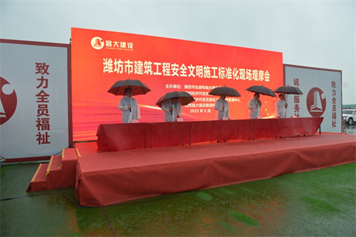 2022年6月23日上午,由濰坊市住建局組織的“濰坊市建筑工程安全文明施工標準化觀摩會”在集團一建公司總承包施工的渤海數字智谷項目現場舉行。濰坊市住建局黨組成員、市建筑業發展服務中心黨委書記、主任許增賢,經濟開發區管委會副主任吳傳華出席。集團公司總裁朱九洲、安全總監閆鵬、副總裁孟憲禮出席觀摩活動。
