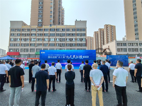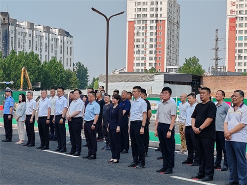 2024年6月30日上午,濰坊市舉行2024年上半年中心城區城市道路集中通車儀式,主會場設在集團四建公司承建的月河路(健康街-勝利街)工地現場,寒亭區分會場設在四建公司承建的吉祥街、八建公司承建的云祥街與渤海路路口。集團公司總裁朱九洲出席主會場活動。出席主會場活動的領導和嘉賓有:濰坊市政府副秘書長張勇,濰坊市住建局黨組書記、局長馬冰,濰城區委副書記、區長程錦,市住建局黨組成員、副局長盧波,市委宣傳部、市財政局、市自然資源和規劃局、市住建局、市城管局、市公安局交警支隊分管負責同志,各道路建設指揮部有關負責同志,項目建設單位、施工單位、設計單位、監理單位等參建單位代表、人大代表、政協委員、群眾代表等共約70人。