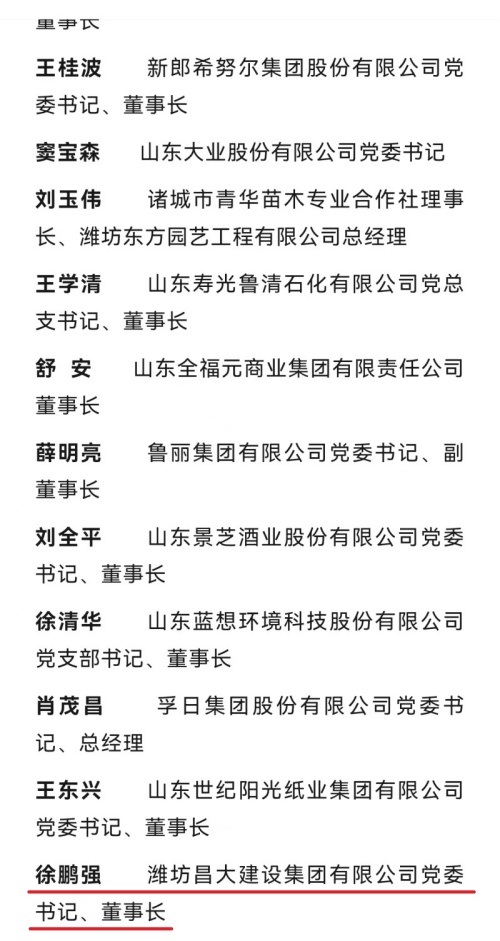 徐鵬強董事長榮膺濰坊百名時代先鋒榮譽稱號