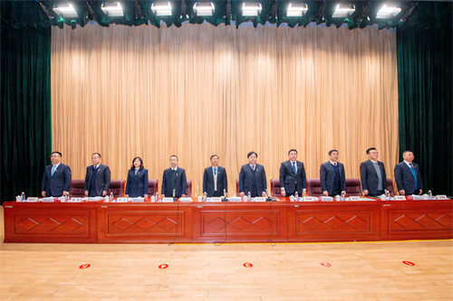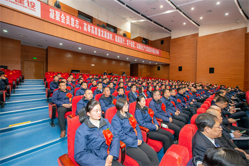 工人文化宮穹頂璀璨、滿天星光,寓義職工大眾之家?!澳廴珕T意志,高舉高質量發展旗幟,砥礪前行、實干奮發,以新質生產力實現百年昌大目標!”的大幅標語催人奮發。上午九時,會議準時開幕。集團董事長徐鵬強、總裁朱九洲以及穆乃杰、姜建魯、吳杰、孟憲禮、房海、劉雁冰、惠守江、王建波等高管出席大會并在主席臺就座。集團公司第九屆職工代表、列席代表,集團公司中層管理人員、2024年度受表彰的先進集體代表和先進個人以及總部全體人員共319人參加大會。