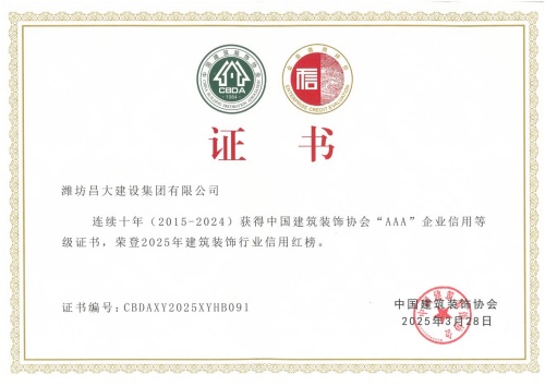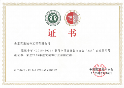 2025年3月28日,中國建筑裝飾協(xié)會在武漢召開了首屆大國裝飾可持續(xù)發(fā)展大會。會上發(fā)布了建筑裝飾行業(yè)信用建設(shè)十年發(fā)展報告,公布了連續(xù)十年(2015-2024)榮獲中國建筑裝飾協(xié)會AAA信用等級企業(yè)名單及2025年度建筑裝飾行業(yè)信用紅榜獲獎名單,并頒發(fā)了榮譽證書。