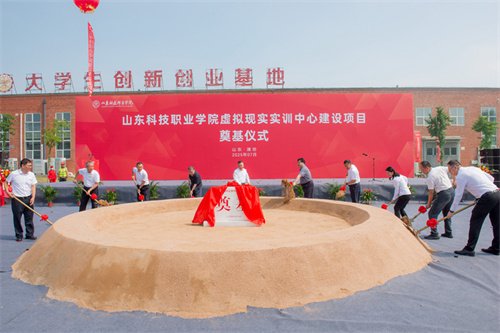 2025年7月17日上午,山東科技職業學院虛擬現實實訓中心項目奠基儀式在項目現場隆重舉行。學院黨委書記鄭德前,集團公司總裁朱九洲,山東省工程咨詢院黨組成員、副院長何健,山東建筑大學設計集團有限公司董事長、總經理李端杰,招商銀行濰坊分行黨委書記、行長潘兆強,學院黨委委員、紀委書記秦建坤,學院黨委委員、副校長徐曉雁、董傳民,學院副校長張振東出席奠基儀式。