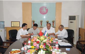 濰坊市市委書(shū)記劉運(yùn)與集團(tuán)董事長(zhǎng)徐鵬強(qiáng)共同見(jiàn)證集團(tuán)與國(guó)外企業(yè)簽署合作協(xié)議